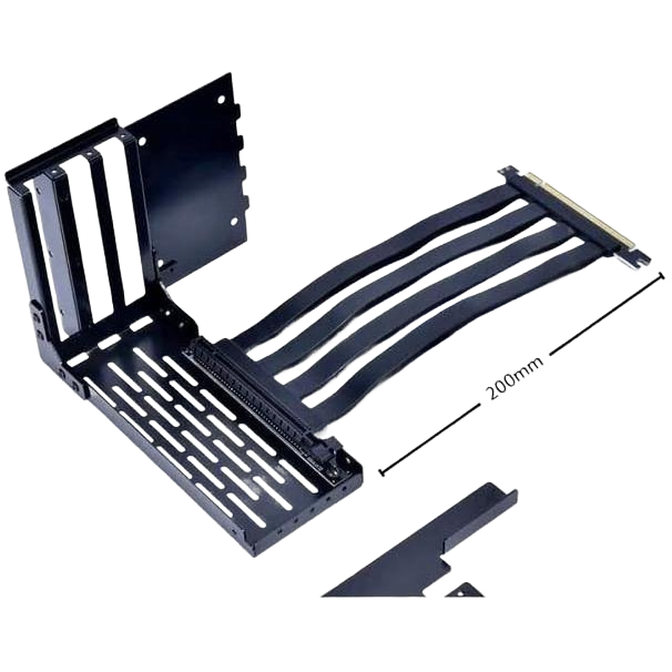 Vertical Graphics Card Holder for LANCOOL II with PCI-E Riser Cable. Allows you to vertically display graphics cards while still having room for 2 x 120mm fans. Mounted underneath to create an unobstructed airflow. Included PCI-E riser cable.